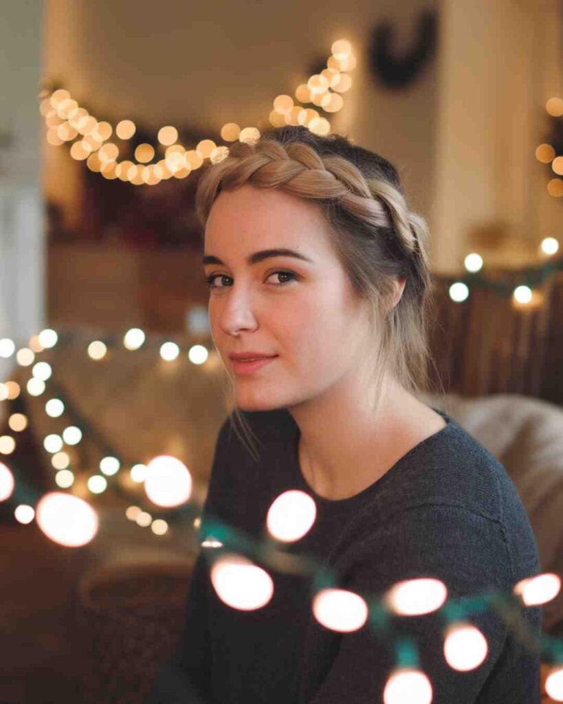 Want instant goddess energy? A crown braid is your move. It circles the head, looks polished, and keeps everything off your face (great for crowded winter parties).