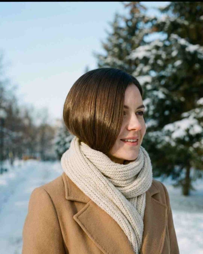 This cut never competes with winter outfits. It complements everything, especially cozy scarves and bold jackets. For more bob inspiration, check out Bob Hairstyles Over 50.